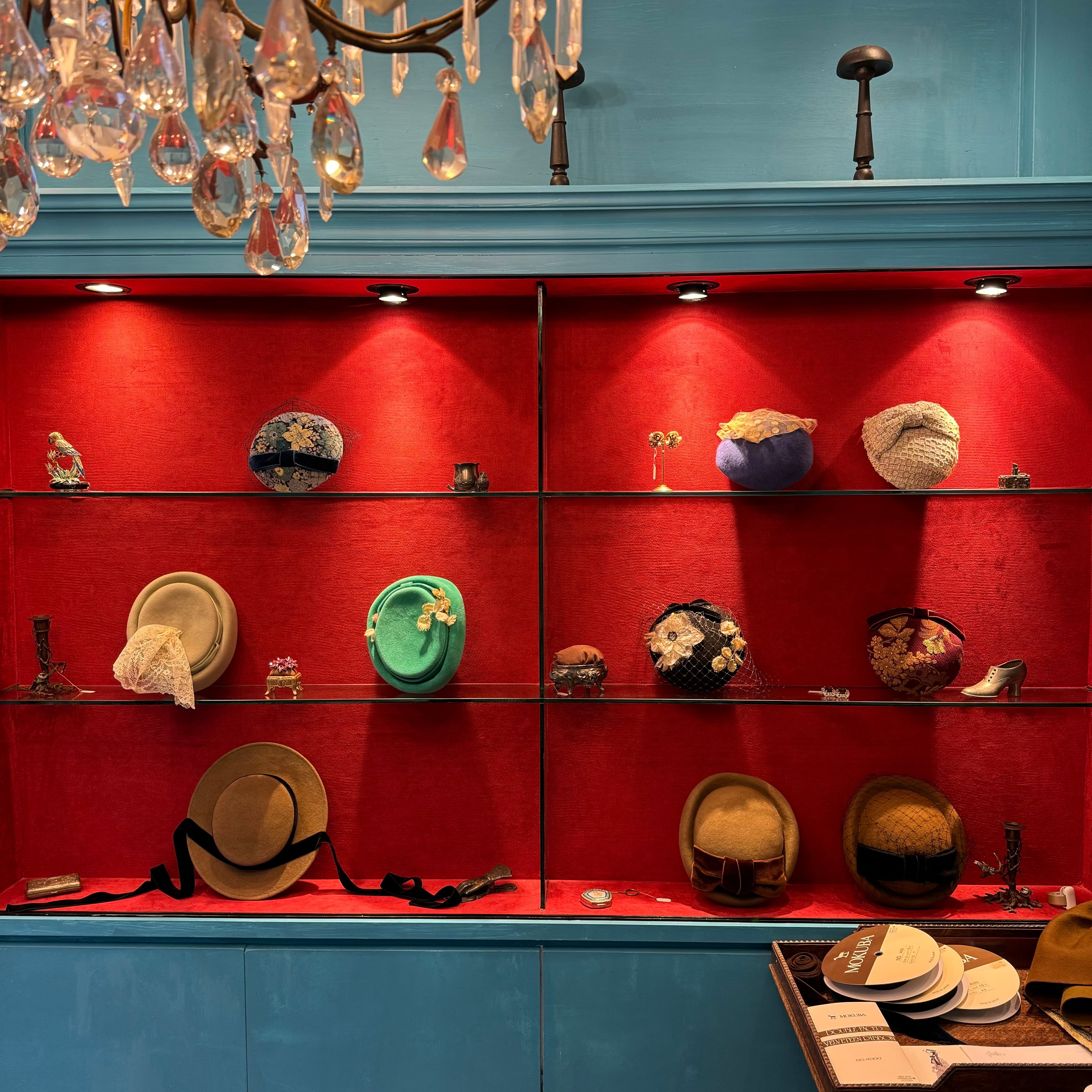 チェコベロアトークハット ピスタチオ フランスアンティークレース