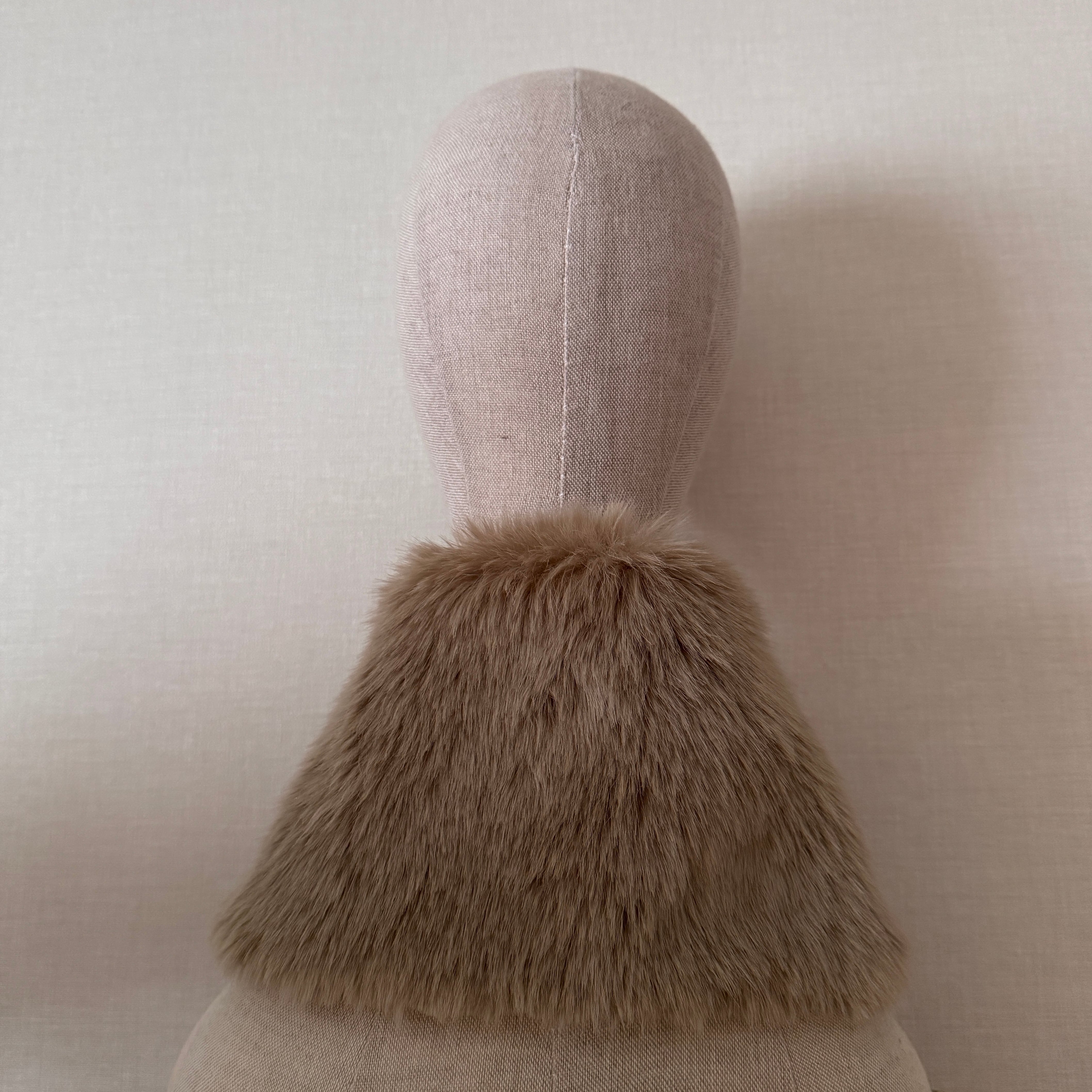 ふんわりファーに包まれる、冬だけのおしゃれを楽しむヘッドドレス。 なめらかな別珍とやわらかファーの組み合わせは、思わず触れたくなる可愛さ。大きなリボンを結べば、とびきりガーリーでクラシカルな印象に。 リバーシブルでお楽しみいただけ、首に着けてティペットとしても使用できます。 寒い日のお出かけを、特別に愛らしく彩ってくれるアイテムです。 表地:国産別珍 ファー:アクリル100% リボン:シルクシャンタン カラー:モカ サイズ:フリー
